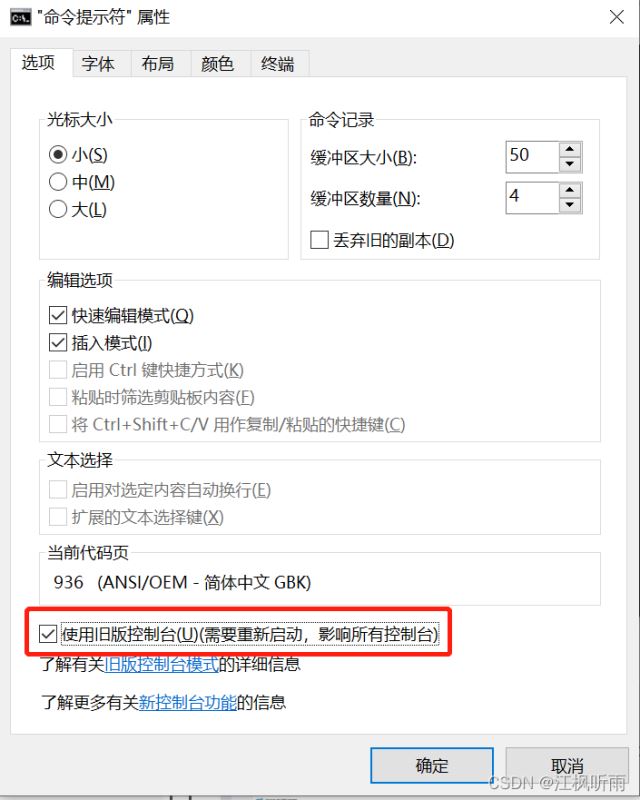 目录 乱码原因 方法一(永久性) 方法二(永久性)强力推荐!!!!!!!!!!! 附加(CMD修改成旧控制台) 方法三(临时性) 总结 解决vscode终端输出中文乱码问题,强推方法二,少走几年弯路 解决网上终端chcp65001仍然无效,或者vscode由utf-8改为GBK仍然无效的问题,提供了三个方案,c/c++设置通用 乱码原因 因windows中文版系统cmd编码默认为GBK,而vscode默认新建文件的编码为UTF-8所以会出现中文乱码情况 方法一(永久性) 将系统默认编码改为UTF