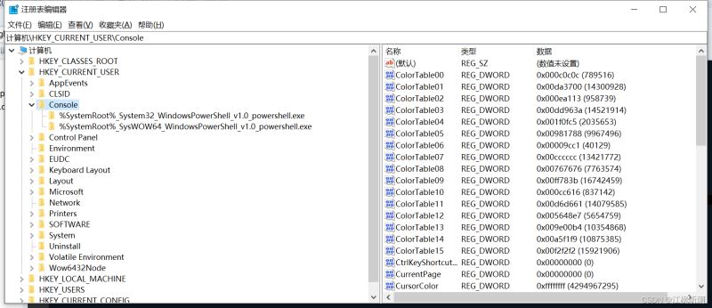 网上有文章说修改注册表HKEY_CURRENT_USER\Console\%SystemRoot%_system32_cmd.exe的CodePage值,这个方法可以解决部分人的问题。但还有一部分人的win10在该路径下是没有cmd相关信息的,只有powershell,这部分用户此方法就没有可行性。