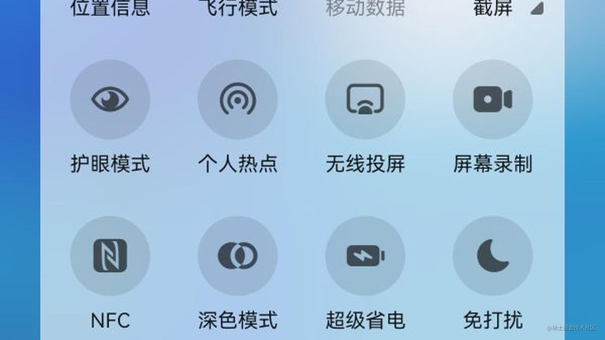 我们通常可以在通知栏上看到“飞行模式”、“移动数据”、“屏幕录制”等开关按钮,这些按钮都属于通知栏上的快捷开关,点击快捷开关可以轻易调用某种系统能力或打开某个应用程序的特定页面。那是否可以在通知栏上自定义一个快捷开关呢?答案是可以的,具体是通过TileService的方案实现。