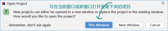 指定克隆地址和克隆目录,假如要克隆到本地位置已经有一个同名的项目,则可以修改新的项目名,如图所示: