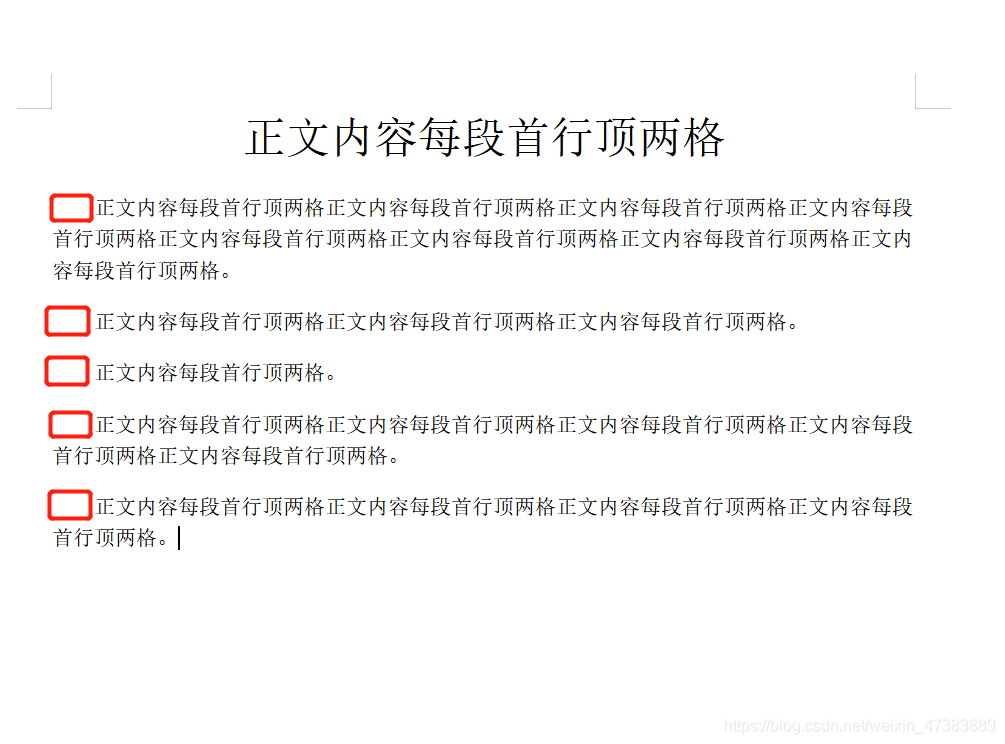 正文内容每段首行顶两格,也就是向右缩进两个字符,像这样: