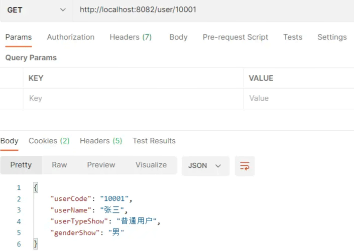 接下来我们在UserController类中写一个测试接口,根据userCode查询用户信息如下: