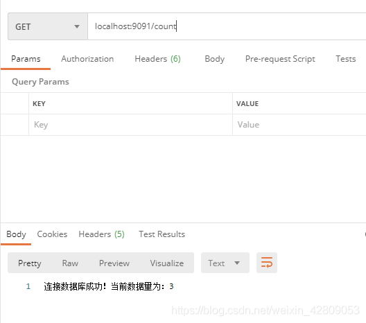 return "连接数据库成功!当前数据量为:" + count;