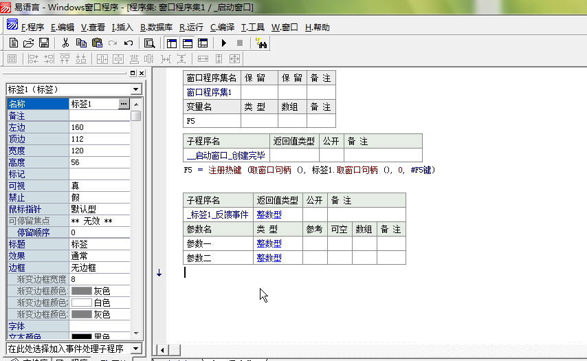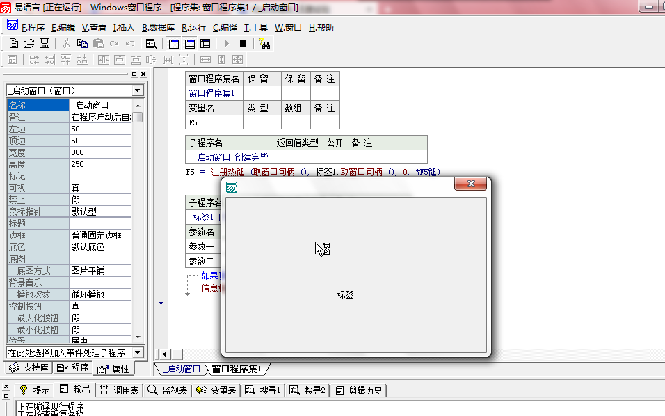 1、按下F5键,显示信息框的教程,打开易语言,首先新建一个标签,