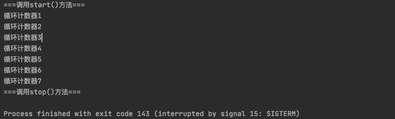 public class TestJVMHook { public static void main(String[] args) throws InterruptedException { Runtime.getRuntime().addShutdownHook(new Thread(()-> stop() )); int count = 1; start(); while(true){ System.out.println("循环计数器"+(count++)); Thread.sleep(5*1000); } } public static void start() { System.out.println("===调用start()方法==="); } public static void stop() { System.out.println("===调用stop()方法==="); } }