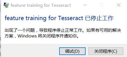 (2)feature training for Tesseract已停止工作。命令行显现: