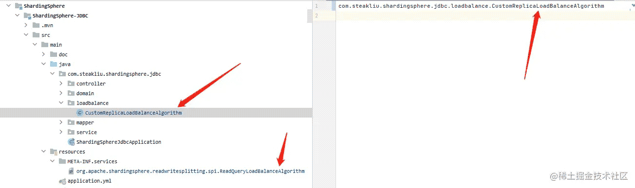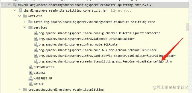 我们从ShardingSphere的读写分离模块shardingspere-readwrite-spliltting-core中的META-INF/services下面看到了负载均衡的SPI。