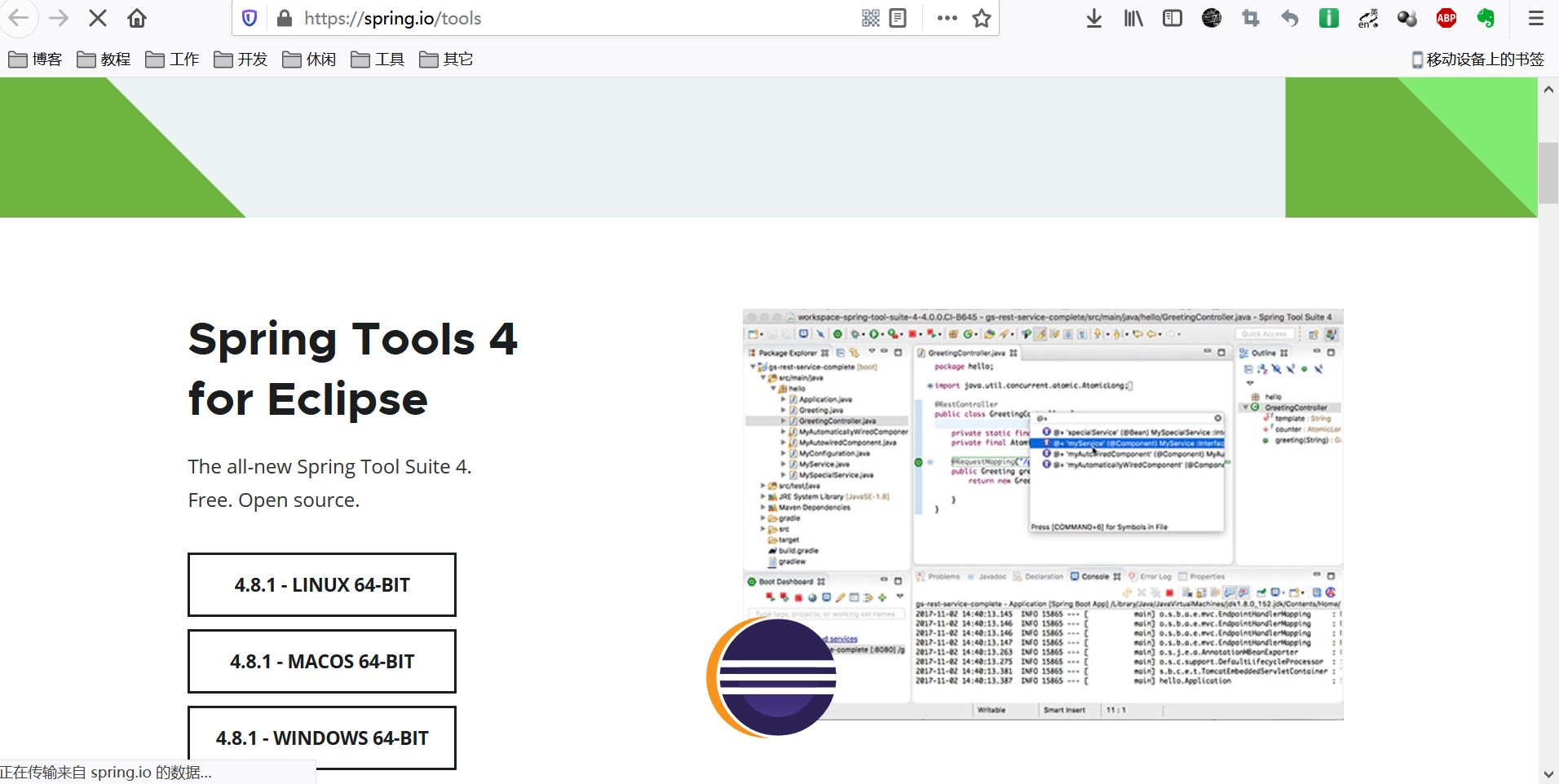 STS有Eclipse插件下载方式和完整版下载方式,我们这里下载完整版。