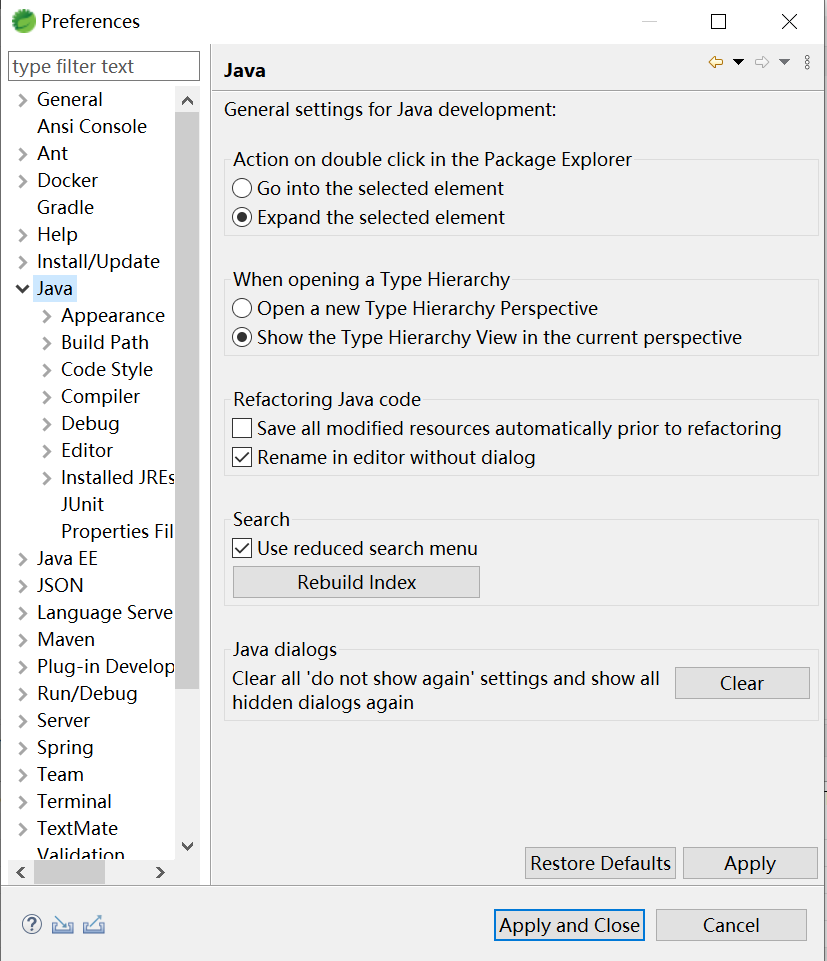 打开·window· --> preferences --> java,弹出页面窗口。