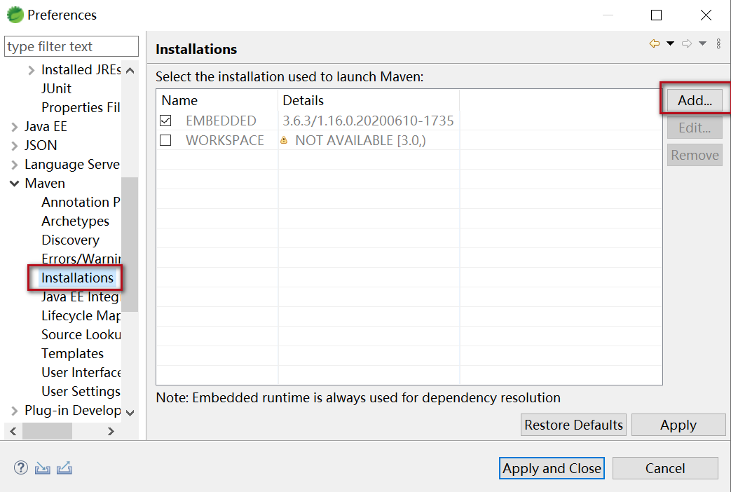 maven –> installations –> add