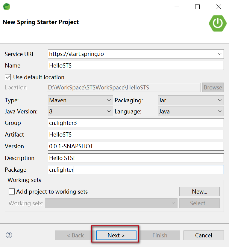 3、使用STS创建SpringBoot项目