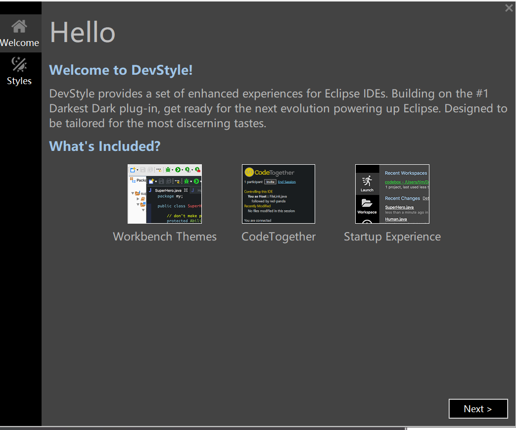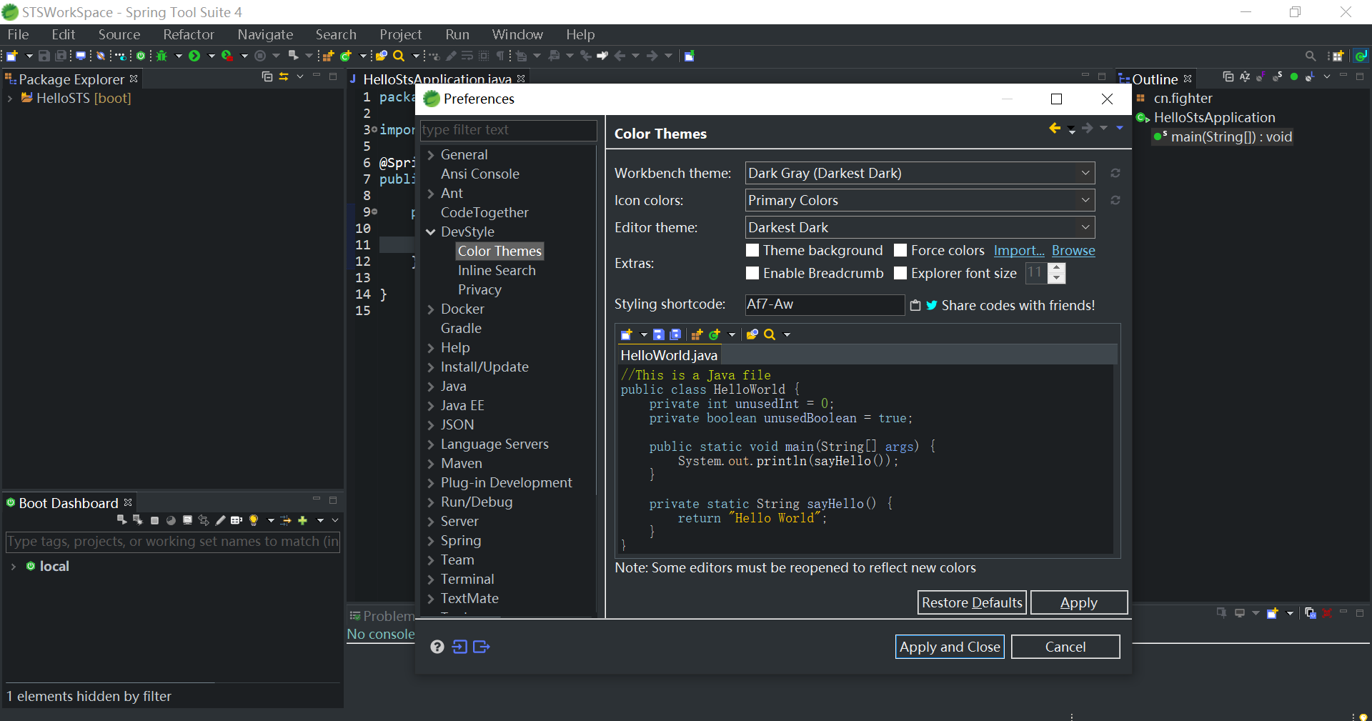 我们很多人已经习惯了暗色的主题,这里我们可以通过 DevStyle这个插件来美化我们的STS。