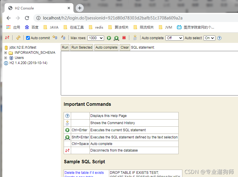 #./dbconfig/test 当前项目路径下dbconfig文件夹下的test数据库 spring.datasource.url=jdbc:h2:file:./dbconfig/test;MODE=MYSQL