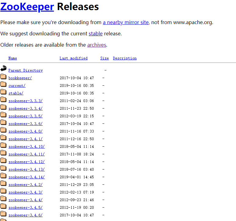 一,下载Zookeeper,地址为http://archive.apache.org/dist/zookeeper/,找到你要下载的版本,我下载了这个版本apache-zookeeper-3.5.6-bin.tar.gz