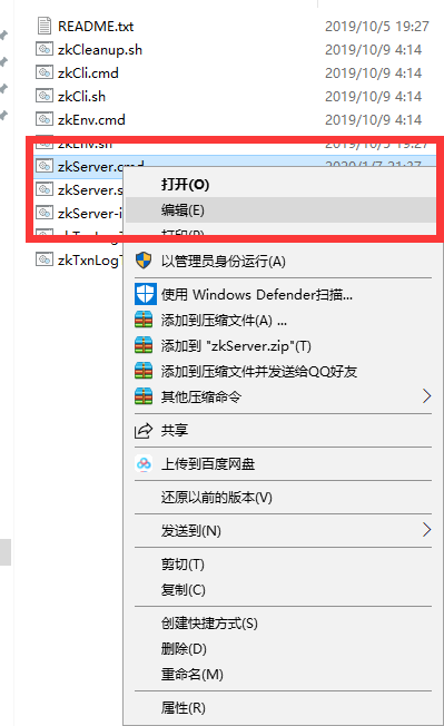 PS,如果遇到zkServer.cmd打开闪退的现象,我们应该进行一下来显示错误在哪里,右键编辑zkServer.cmd