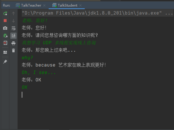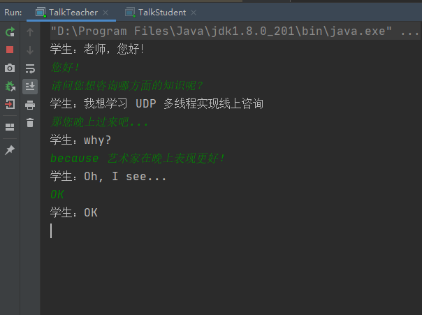 * new TalkReceive:从 8888 端口接收,接收来自 “老师” 的消息