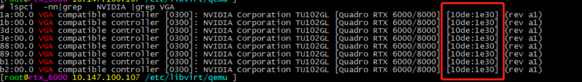 已安装nvidia 显卡 驱动 操作系统:CentOS Linux release 7.9.2009 (Core) 内核版本:Linux 5.4.135-1.el7.elrepo.x86_64 显卡 型号:rtx 6000 kvm版本: virsh version Compiled against library: libvirt 4.5.0 Using library: libvirt 4.5.0 Using API : QEMU 4.5.0 Running hypervisor: QEMU 1.5.3