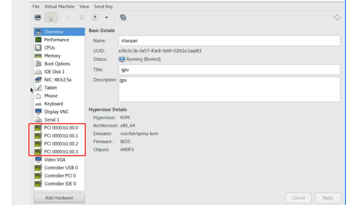 virsh nodedev-detach pci_0000_b1_00_0 virsh nodedev-detach pci_0000_b1_00_1 virsh nodedev-detach pci_0000_b1_00_2 virsh nodedev-detach pci_0000_b1_00_3