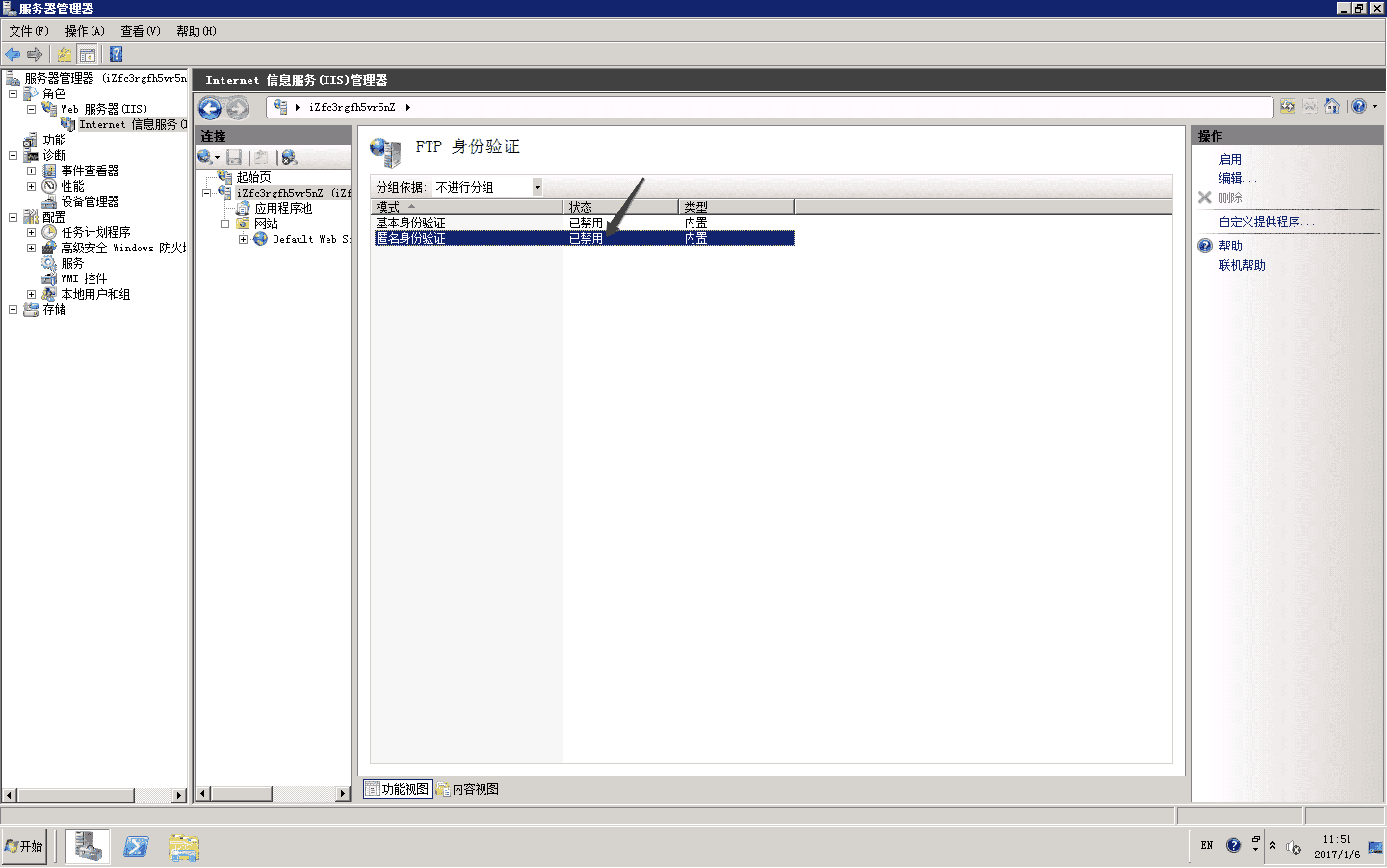 Windows 2008 系统 FTP 禁用匿名登录服务