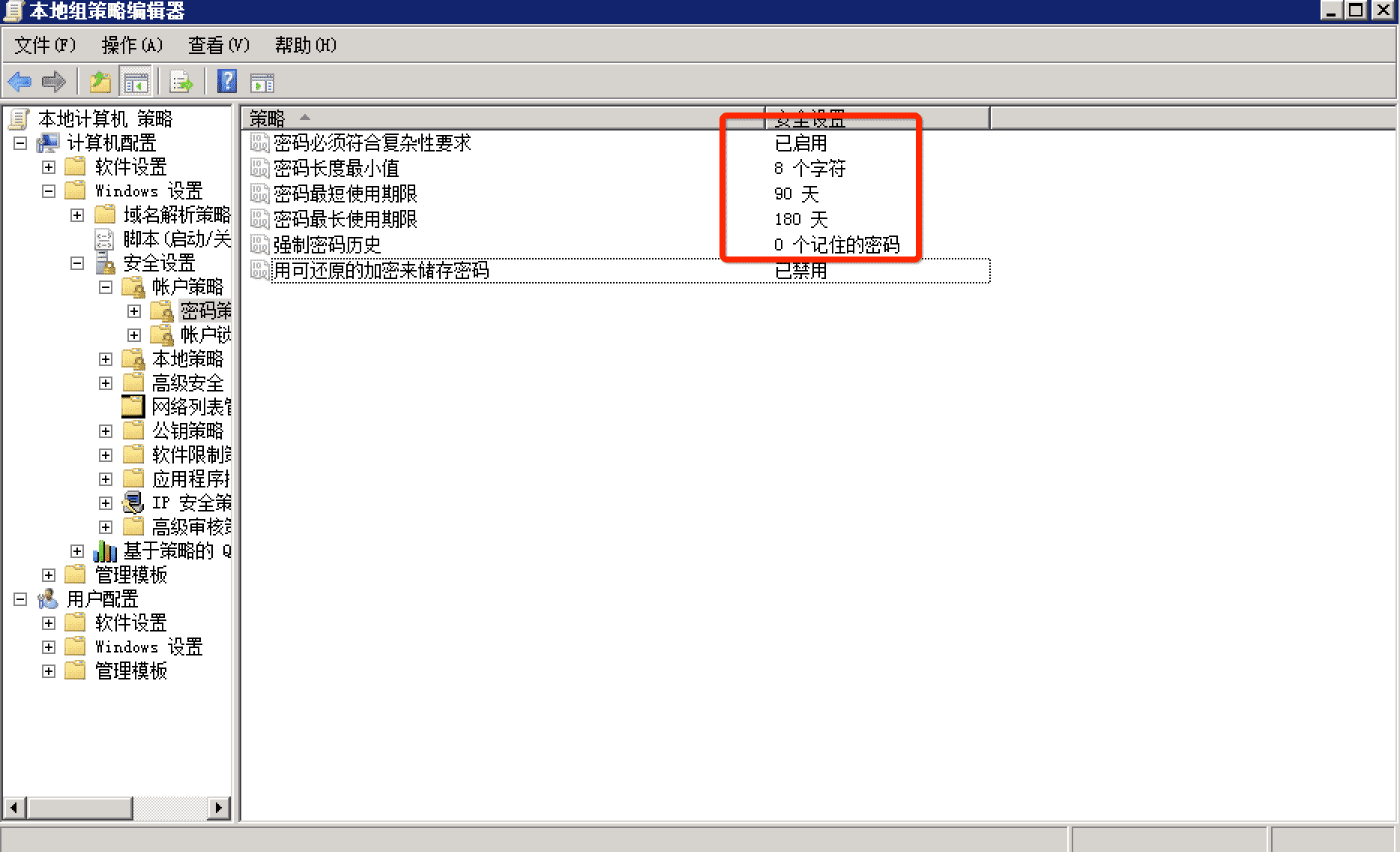 在 Windows 系统中,强密码策略是通过组策略控制的。您可以打开本地组策略编辑器(gpedit.msc),计算机配置 > Windows 设置 > 安全设置 > 账户策略 > 密码策略,启用密码复杂策略。