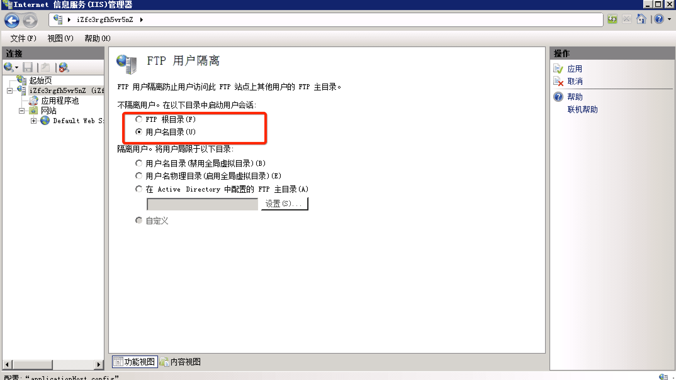 打开 IIS 信息服务管理器,查看所有 FTP 服务相关的安全加固功能。