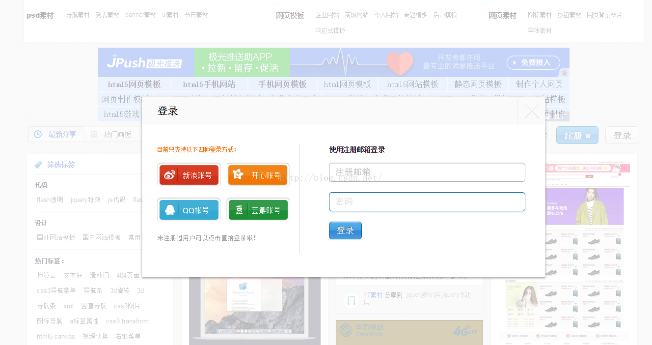 打开目标网站:http://www.17sucai.com/,然后点击登录