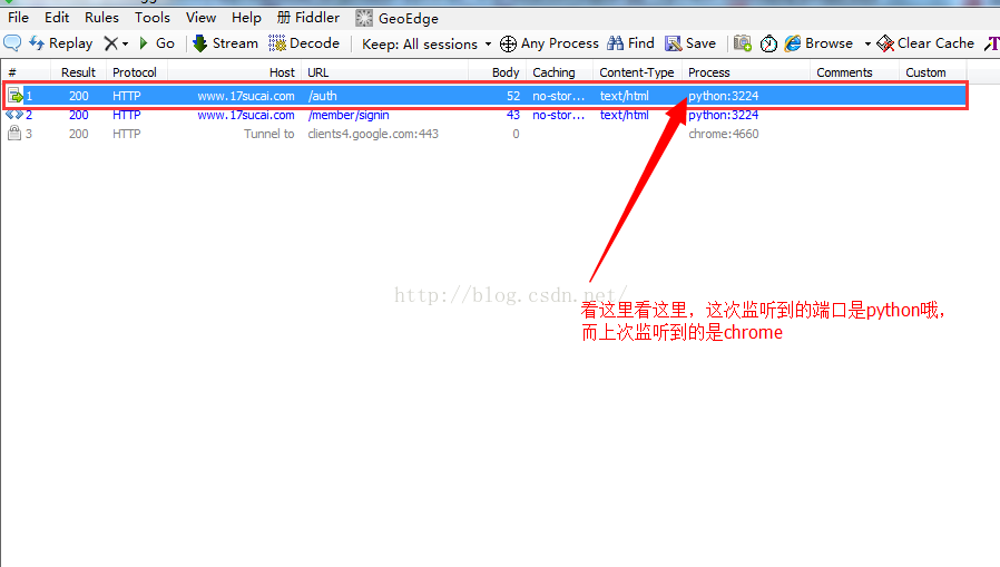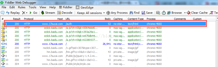 好了,接下来清空一下你的Fiddler,然后运行这个程序,看一下你的Fiddler