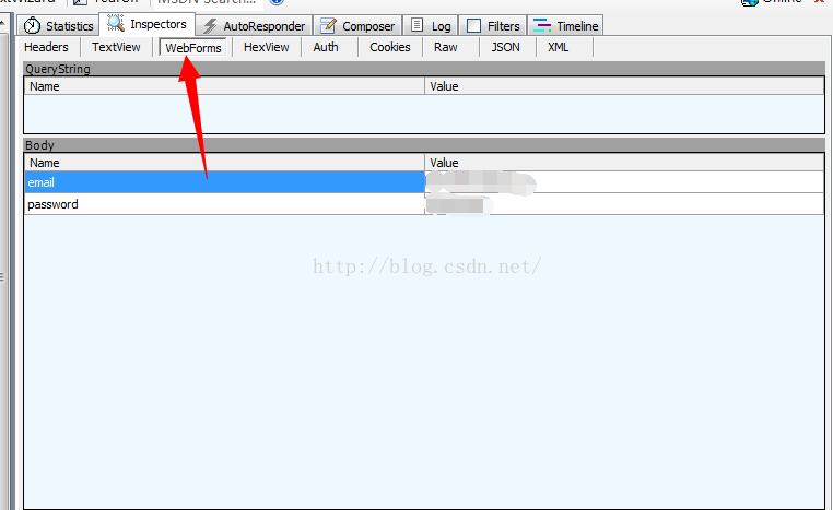 然后点击WebForms可以看到你的请求参数,也就是用户名和密码