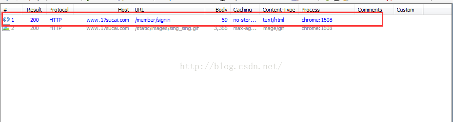 然后点击“签到”,签到成功后到Fiddler中查看捕捉到的url