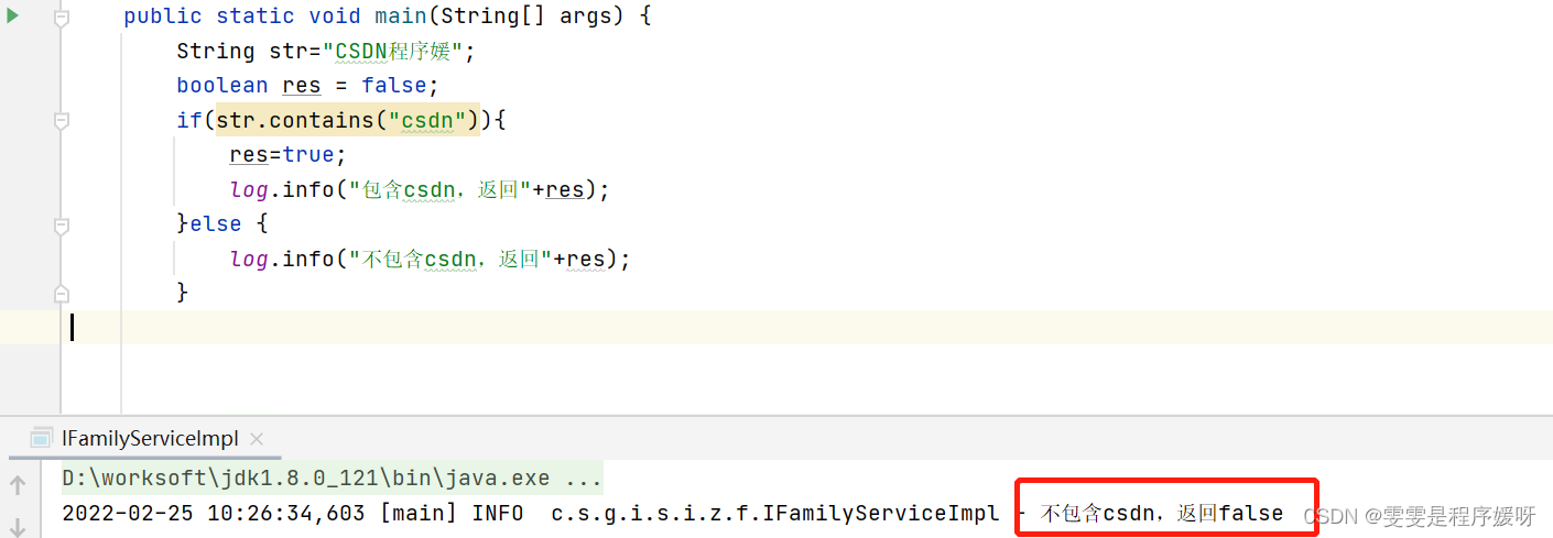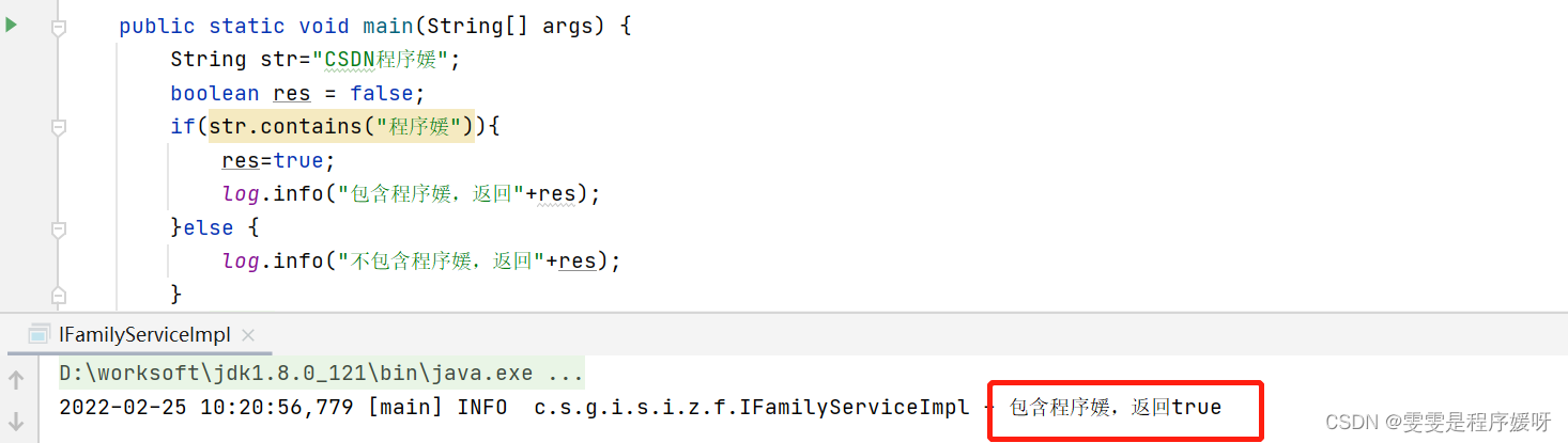 测试String类型“CSDN程序媛”是否包含“程序媛”
