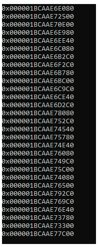 分配的内存地址都是以64-byte为边界,并且分配的内存最后也被成功释放了,函数是正确的。