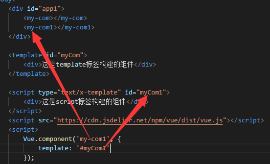 <!-- 2.注册组件,并指定组件的标签,组件的HTML标签为<my-component> -->