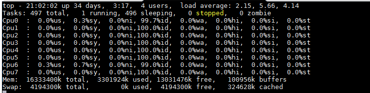 先使用top看下CPU使用情况,基本空闲。