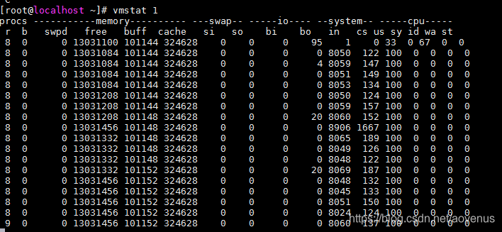 vmstat查看运行前后数据: