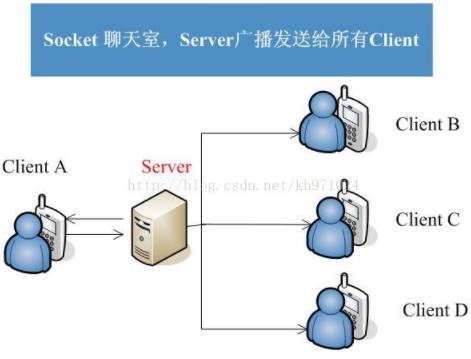 聊天室的原理是这样的,一个客户端与服务器建立通讯成功,即客户端socket连接到服务器的ServerSocket之后,服务器端程序将对应的socket加入到容器中,为每一个socket创建一条线程,服务器端读到客户端发来的信息之后,遍历该容器,给容器中的每个socket发送一次,就完成了所有客户端广播。当客户端离开时,向服务器发送一条断开连接信息,从服务器端断开socket,将容器中的对应socket移除掉。