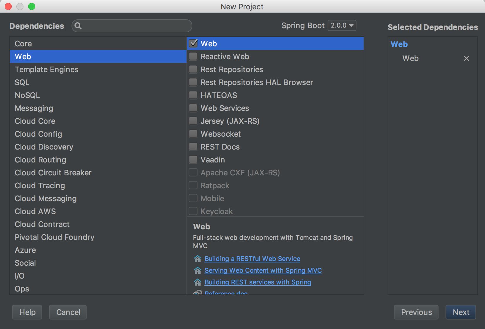 下面选择创建 Spring Boot 项目类型(选择 Web 依赖项):