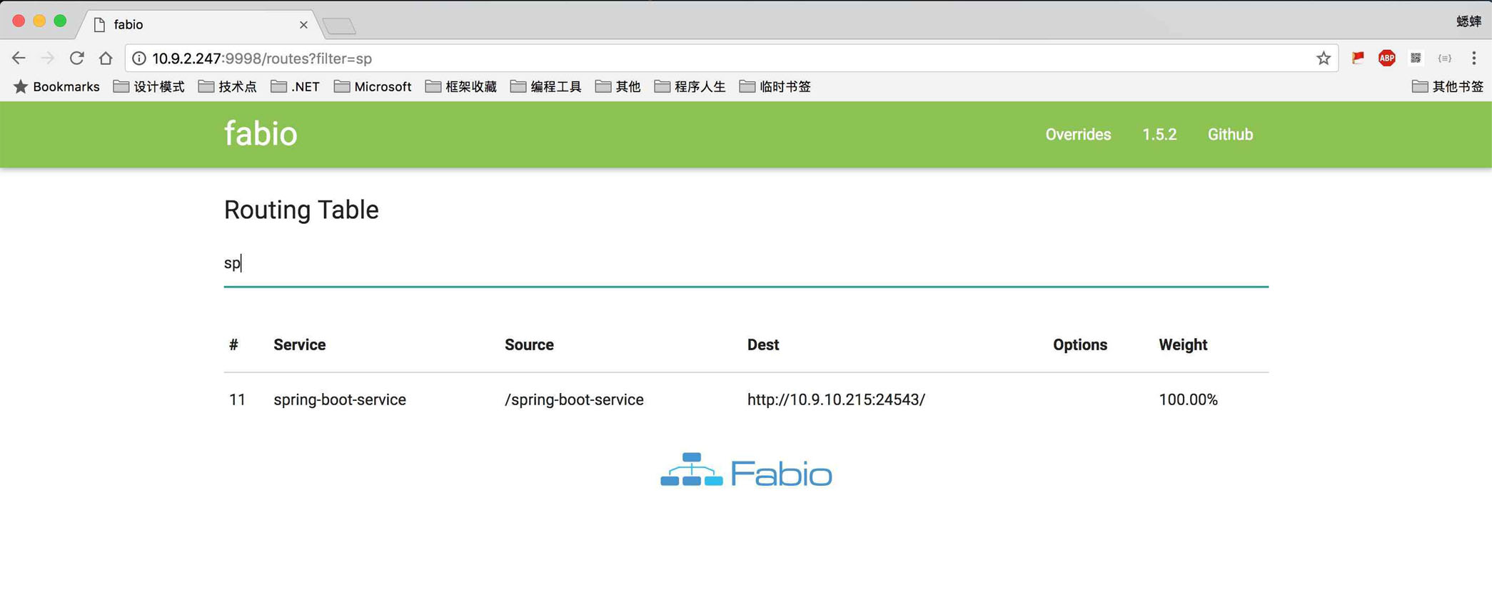 查看 Fabio 集群是否包含服务: