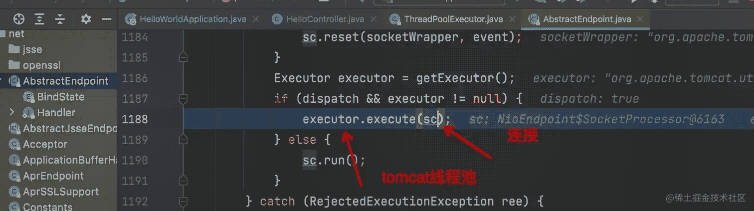 关于tomcat中使用线程池提交浏览器的连接请求的源码如下: