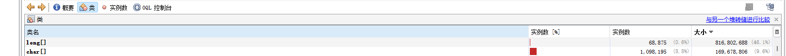a. 发现大量long[]数组占用最大空间,有异常情况