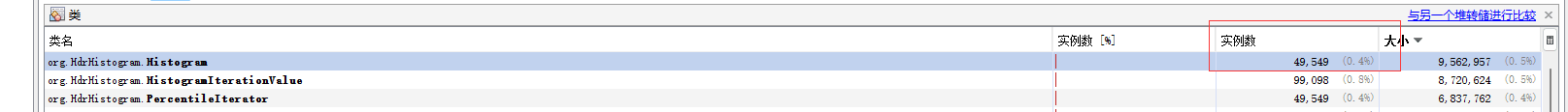 c. 查看Histogram实例的数量,竟然有5w个,对比下正常项目的堆栈,大约是100倍