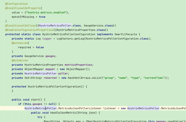 之前发现可疑的线程池是HystrixMetricsPoller ,经过查看,该线程池由HystrixMetricsPollerConfiguration