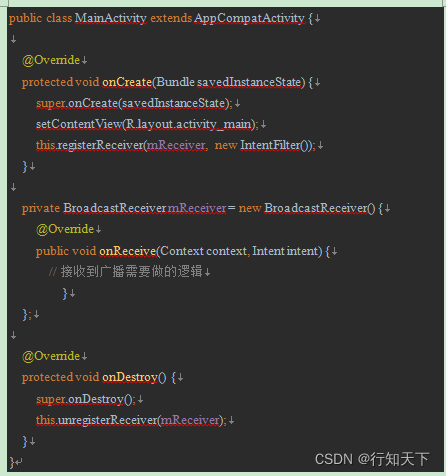 未取消注册或回调导致内存泄露?比如我们在Activity中注册广播,如果在Activity销毁后不取消注册,那么这个刚播会一直存在系统中,同上面所说的非静态内部类一样持有Activity引用,导致内存泄露。因此注册广播后在Activity销毁后一定要取消注册