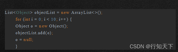 集合中的对象未清理造成内存泄露?在循环中把引用o释放了,但是它被添加到了objectList中,所以objectList也持有对象的引用,此时该对象是无法被GC的。因此对象如果添加到集合中,还必须从中删除,最简单的方法防止集合类泄漏内存的方法