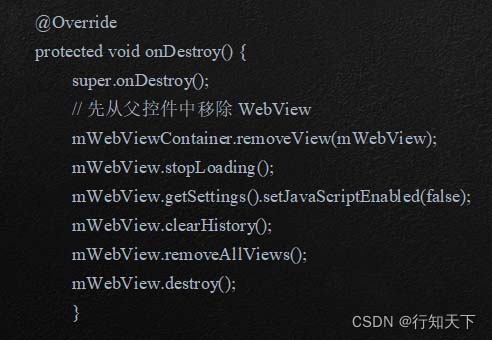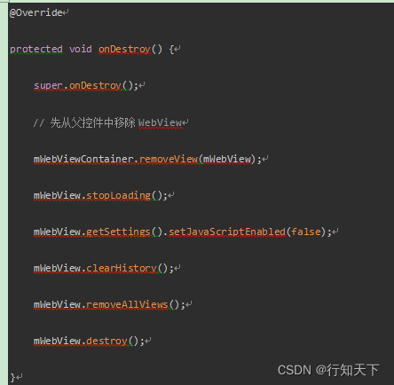 4.在当前Activity销毁的时候 记得在onDestroy方法中销毁这个WebView