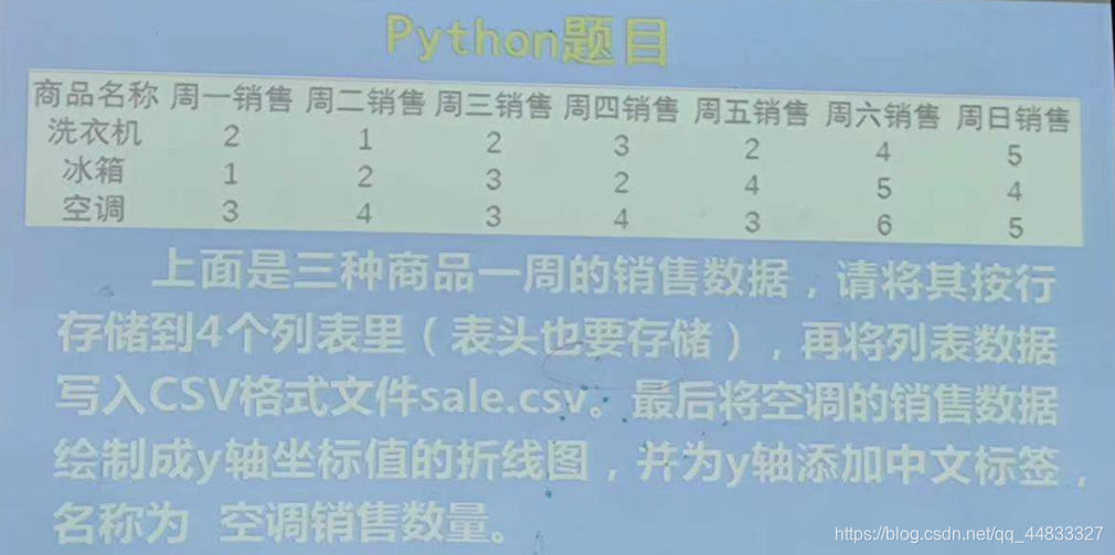 # '商品名称','周一销售','周二销售' ,'周三销售','周四销售','周五销售','周六销售','周日销售'