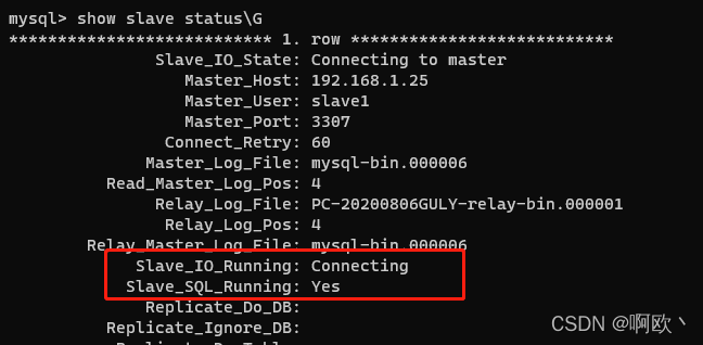 两个Running都为Yes时,表示连接成功了。不成功请自行查阅资料debug。我这里是对方库没开。