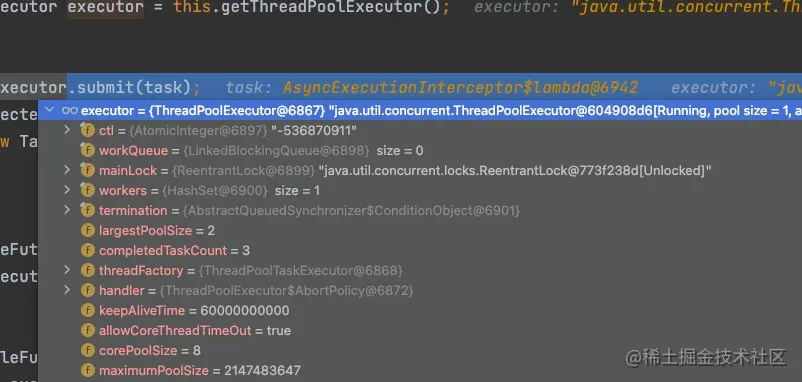 访问时,直接打个断点,即可获取执行异步线程的线程池。