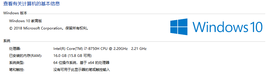 当前笔记本操作系统为Windows 10 教育版,CPU为i7-8750H,在BIOS内已经默认启用了虚拟化: