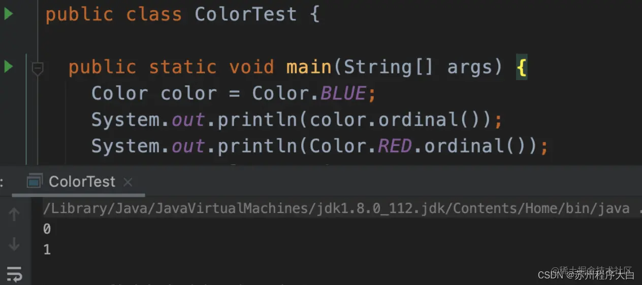 下面我们来看下如何使用 EnumMap,首先我们需要创建一个枚举 Color。