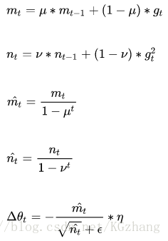 其中,前两个公式分别是对梯度的一阶矩估计和二阶矩估计,可以看作是对期望E|gt|,E|gt^2|的估计;